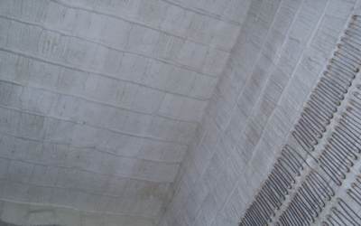 另一類是陶纖噴涂料或澆注料(背襯)+陶纖模塊(熱面);此類結構具有較高的綜合性能,可充分避免煙氣對錨固件的腐蝕,效果等同于阻氣金屬箔。