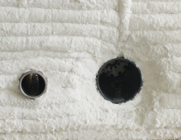 2、預(yù)制成型,施工簡(jiǎn)便:該部位采用澆注料預(yù)制成型,施工時(shí)只需將預(yù)制塊的固定螺桿采用螺母、墊片固定到爐頂?shù)匿摷芙Y(jié)構(gòu)上,安裝非常方便,可大大降低澆注料現(xiàn)場(chǎng)澆注的施工難度。