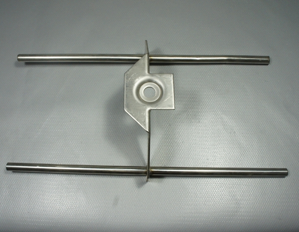 該結(jié)構(gòu)形式的錨固件由一件形似“蝶”狀的支架,焊接兩條耐熱剛管組成,在鋼管的兩側(cè)各穿插一件壓縮量均衡的陶瓷纖維折疊毯。該結(jié)構(gòu)形式的硅酸鋁纖維模塊,不僅錨固結(jié)構(gòu)牢固,而且能保證模塊安裝完畢,拆除保護(hù)片之后,壓縮過的折疊毯能產(chǎn)生充分回彈,膨脹完全不受錨固結(jié)構(gòu)的限制,保證爐襯的無縫要求,同時(shí)因?yàn)樘绽w模塊與背襯層間只有一層鋼板的間縫,能實(shí)現(xiàn)與背襯層間的緊密貼合,保證爐襯厚度均勻、平整美觀。
